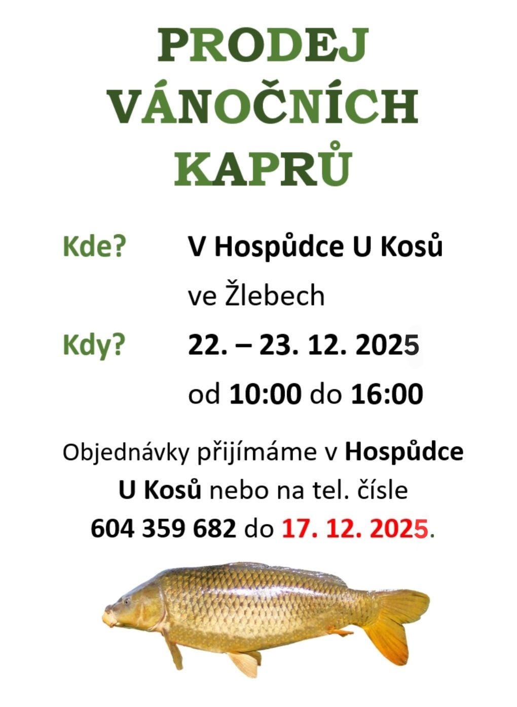 Prodej VÁNOČNÍCH KAPRŮ 2025
